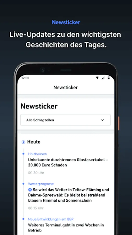• Newsticker: Always up to date with all the headlines in the 24/7 news feed.