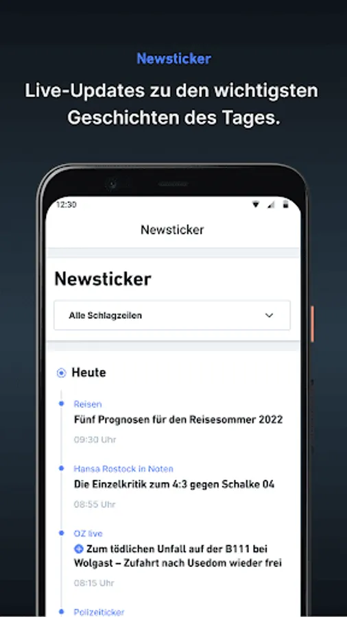 • Newsticker: Always up to date with all the headlines in the 24/7 news feed.