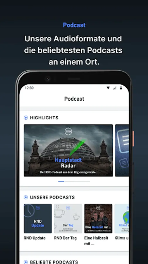 • PODCASTS: The app offers an extensive selection of specially produced and freely accessible podcasts.