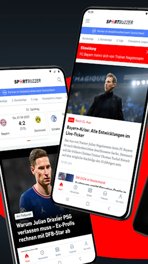 The Sportbuzzer football app is your news update for the world of sport. We show what moves Germany and the world in sport. Stay informed about the Bundesliga and 2nd division, the DFB Cup, the Champions League and the Europa League as well as the Premier League and World Cups and European Championships. In addition to football, you can also experience other sports such as motor sports, ice hockey, tennis and handball in the Sportbuzzer sports app. Stay informed about headlines and current topics and also experience the whole world of podcasts. Your sports buzzer highlights: