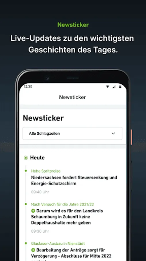 • Newsticker: Always up to date with all the headlines in the 24/7 news feed.