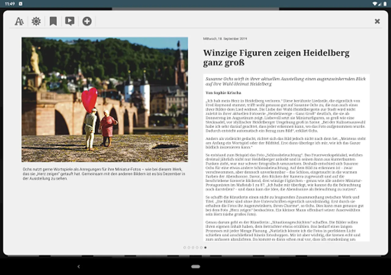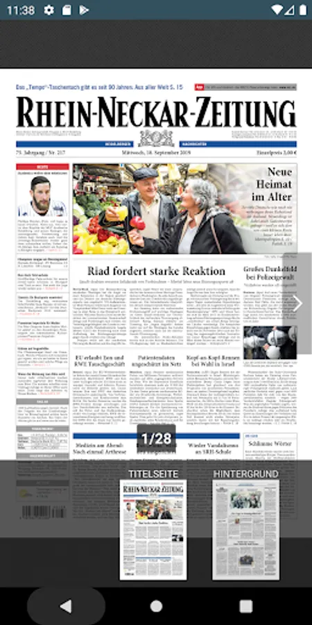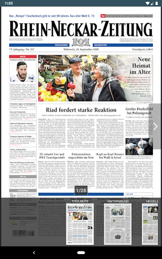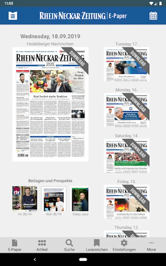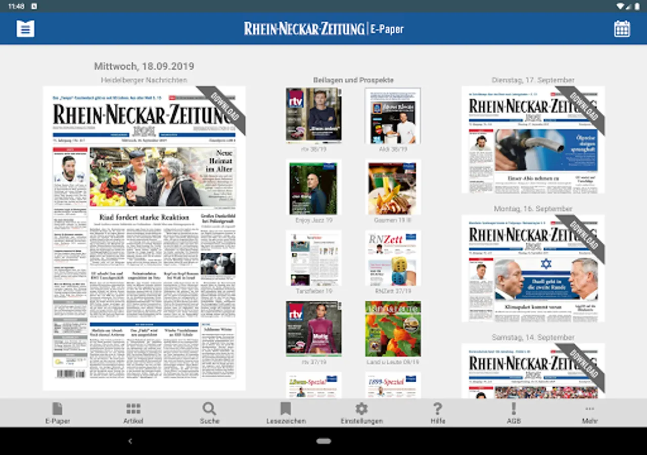 Experience the Rhein-Neckar-Zeitung on your Android mobile devices in the familiar newspaper view or comfortable in the article view and get the additional options that offers the digital version of the Rhein-Neckar-Zeitung.