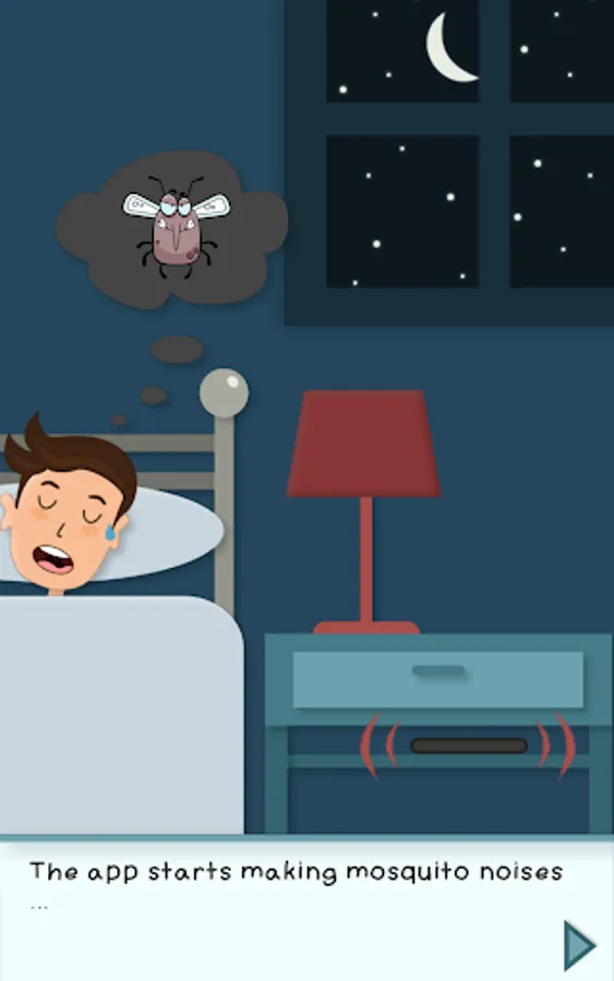 You are able to configure the app that your victim is not able to fall asleep. The mosquito is quiet, every time the victim turns on the light to look for the mosquito. But when the light turns off again, the mosquito gets ready to disturb the victim again.