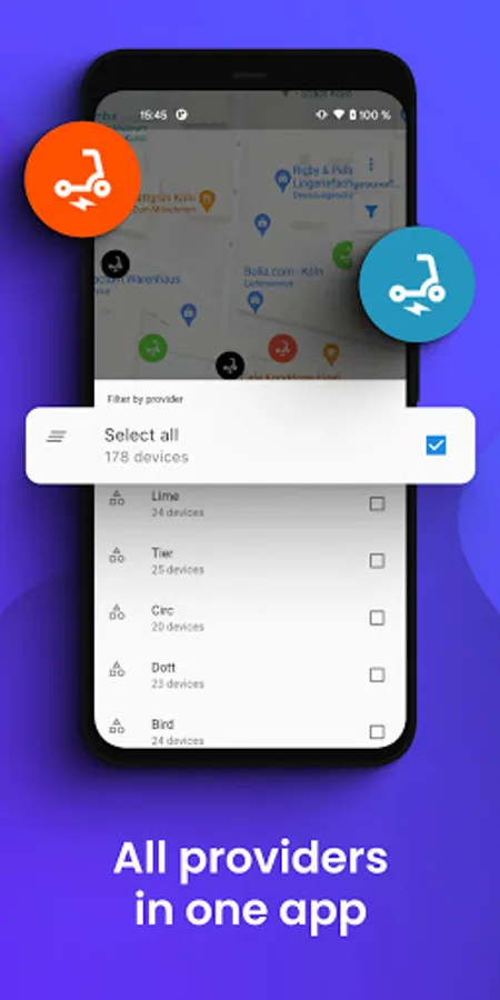 E-Scooter & Bike Map app brings all e-scooters and bike providers on a single platform.