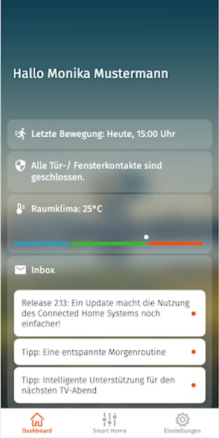 With the appropriate devices, the app alerts you when your children or relatives need help, when water leaks or the smoke detector is activated. You can then get help quickly and prevent worse.