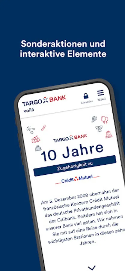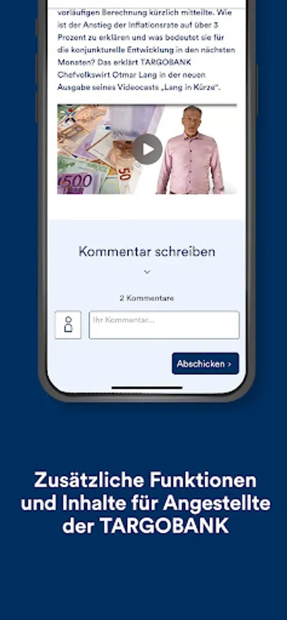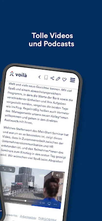 voilà - that's the employee app TARGOBANK group of companies. There - are available to everyone - News, exciting stories and lots of backgrounds from our company. Employees also get access to internal Contributions (after registration).