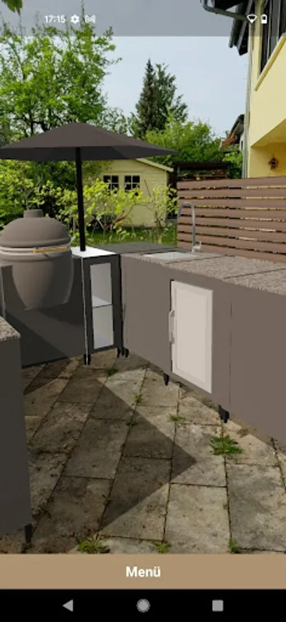 The app shows you how you can easily project the outdoor kitchen to where you want it to be in real life.