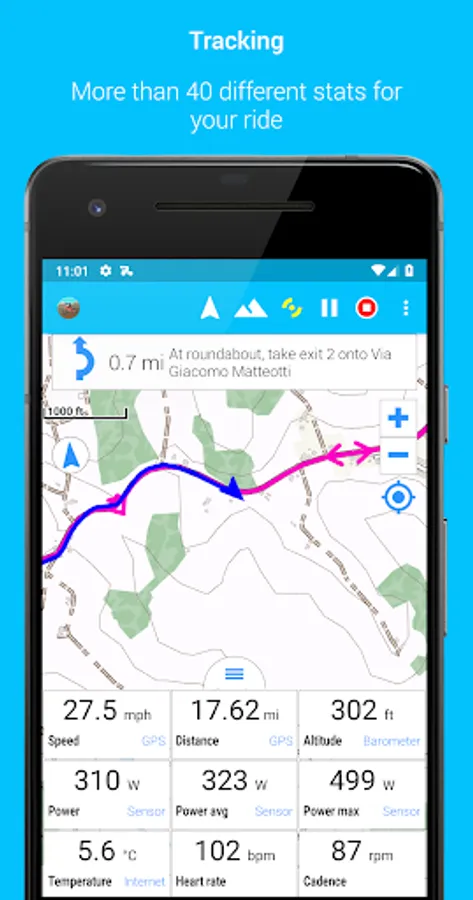✓ Plan your route! Touch the map where you want to go. BikeComputer Pro will calculate a route with distance, elevation and elevation profile for you and will save the route to follow it while riding