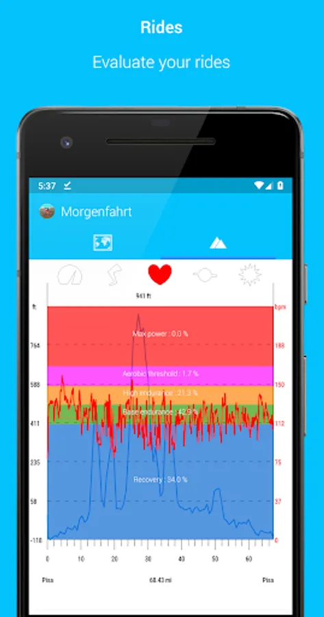 ✓ Audio Feedback – BikeComputer Pro informs you about your average speed, the current elevation, the remaining distance on trail, your climbing speed, your heart rate and training zone, when you have lost the actual trail and other information