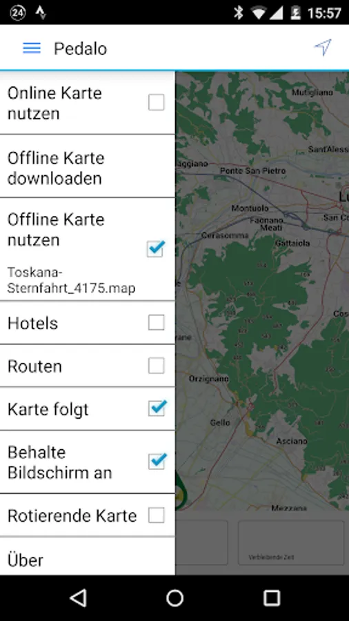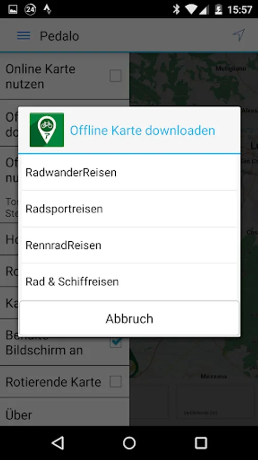 Pedalo offers the map for cycling, the GPS data of the bike course and hotels booked. Once downloaded, the data and maps are also available offline. Thus, also abroad no roaming fees become due.