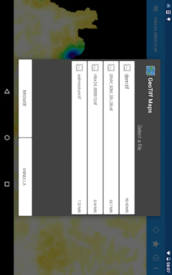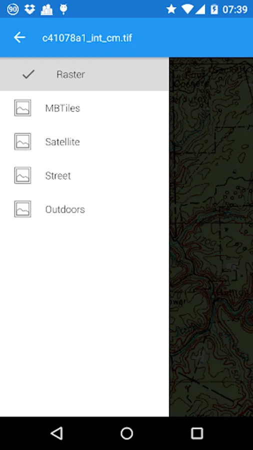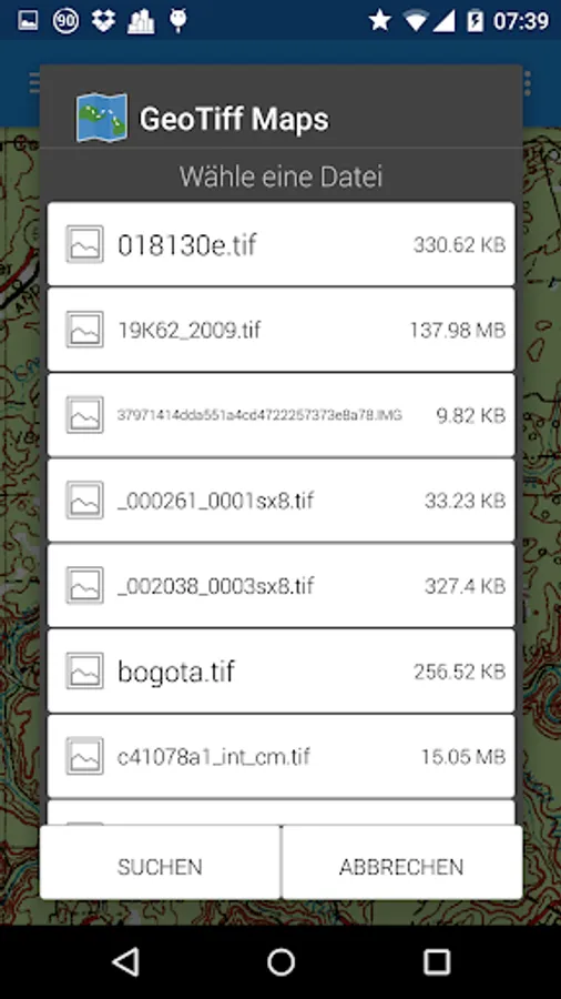 GeoTiff Maps and other raster files, which contain a coordinate reference system can be visualized with this app.