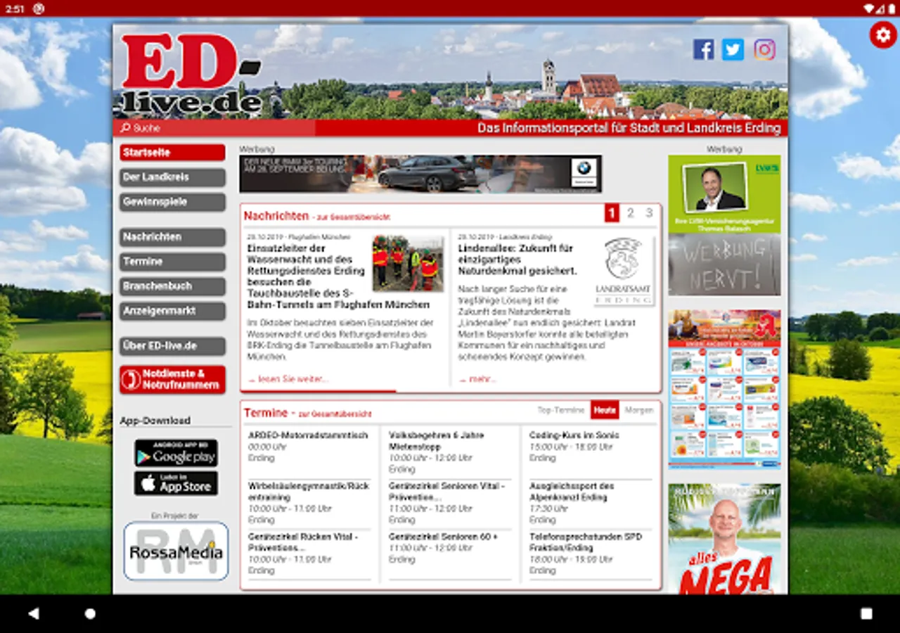 Daily news, appointments, traffic reports and much more. from the district of Erding. In addition, we offer job advertisements, classifieds, real estate offers, competitions and regional special topics from the district of Erding.