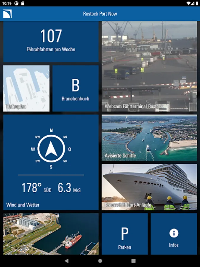 Rostock overseas port: the most important transshipment point on the Baltic Sea for ferry traffic, freight traffic and combined cargo traffic. Popular port of call for cruise ships. With "Rostock Port Now" you will receive current information from the port. Such as the ferry schedule, the weather, the port map, the parking facilities, or the live ship traffic.