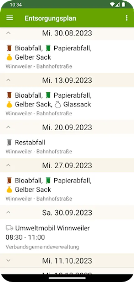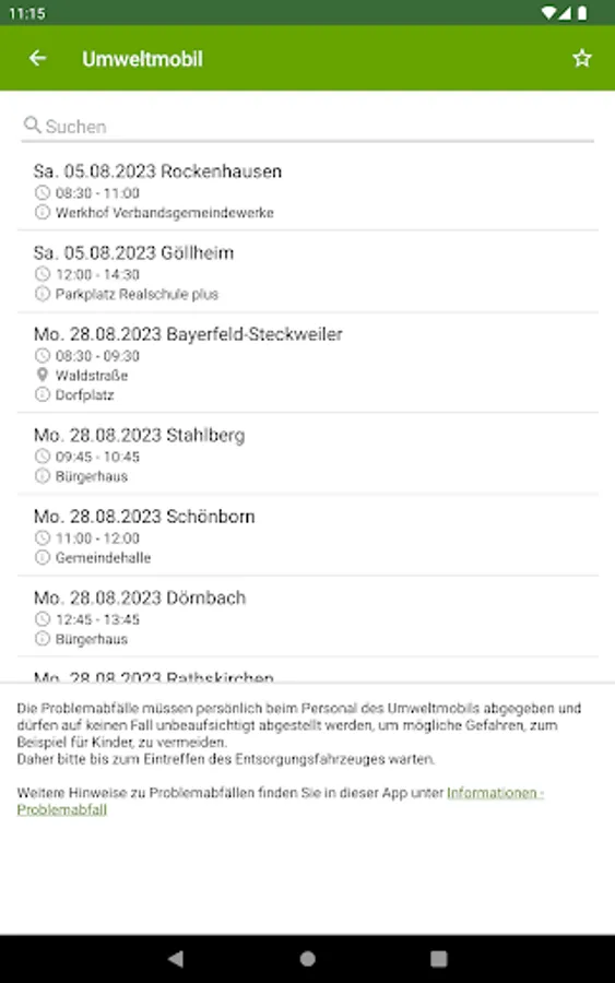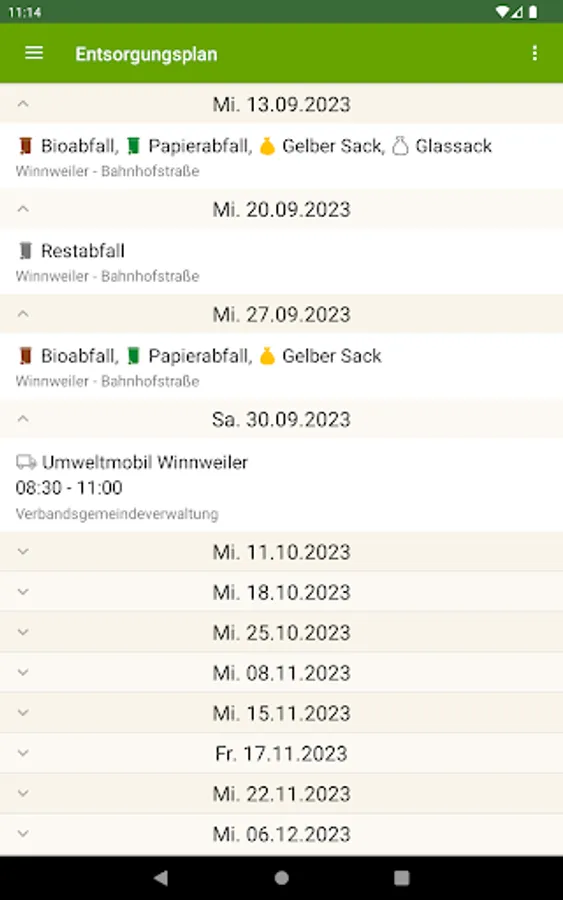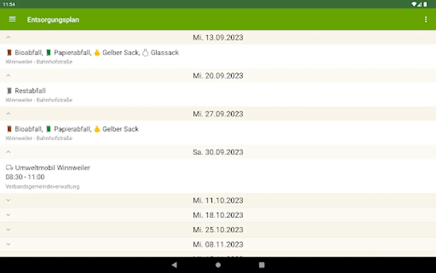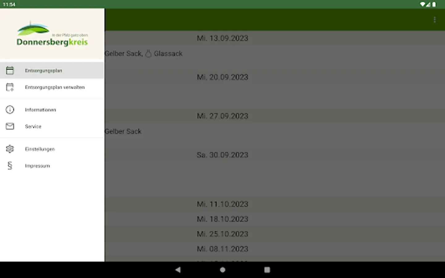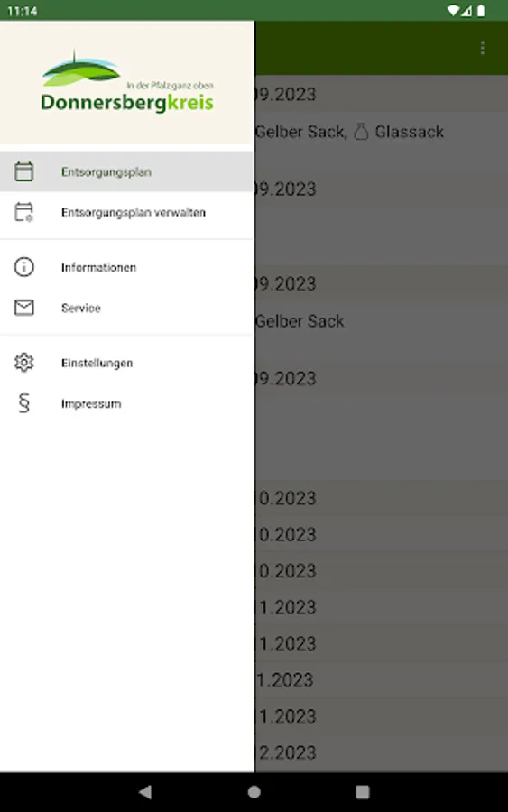 This app reminds you of upcoming garbage collection dates in Donnerbergkreis