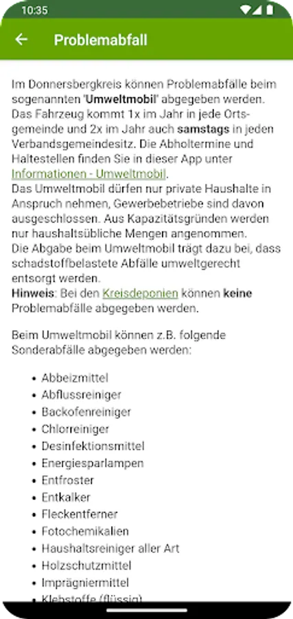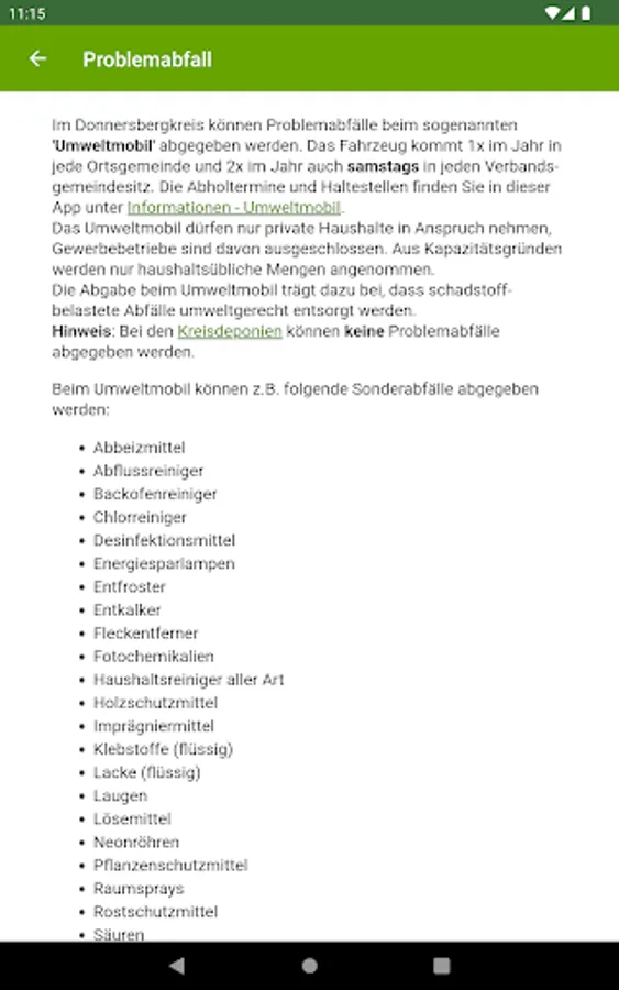 - Information on waste management in the Donnersberg district (opening hours, contact persons)
