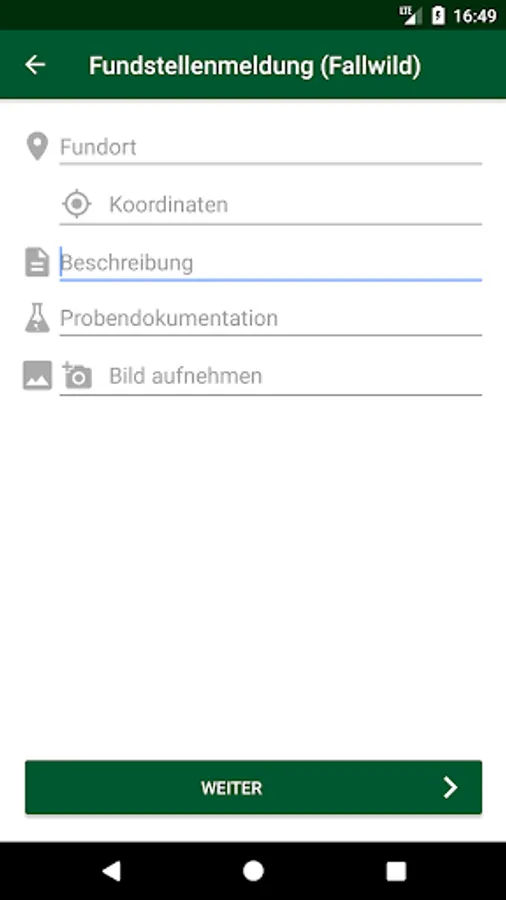 This app is exclusively for the detection of wild boar in the district and in the city of Kaiserslautern in terms of animal health and replaces any other reporting or documentation requirements. In addition to game birds (dead finds), damage reports, wild sightings and wildlife accident reports can be transmitted. This is in addition to a short textual description and the GPS coordinates and photos. Furthermore, a sample documentation can be performed. This app is designed to facilitate hunters and farmers communication with the Veterinary Office Kaiserslautern.