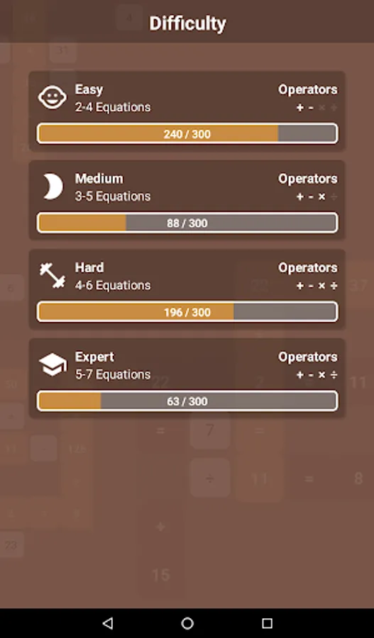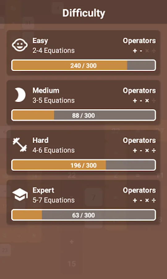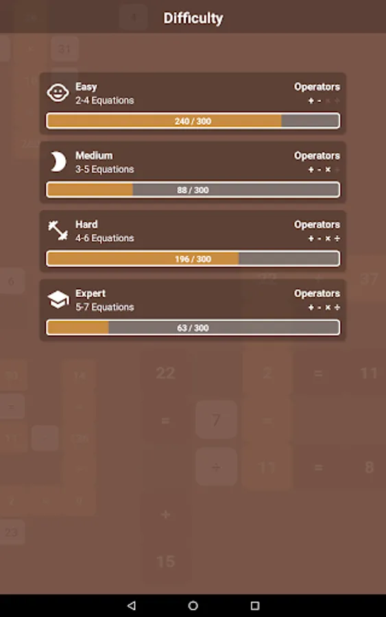 Solve puzzles of mathematical equations by moving the individual parts to the correct field using drag and drop.
