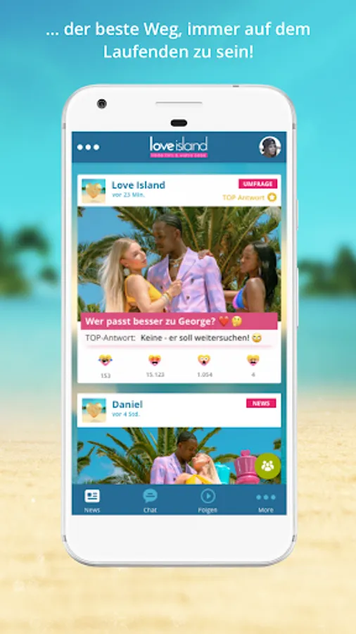 The LOVE ISLAND APP is the best way to always be up to date - receive push notifications and don't miss any news, take part in surveys, answer quizzes or simply look at the latest pictures and videos!