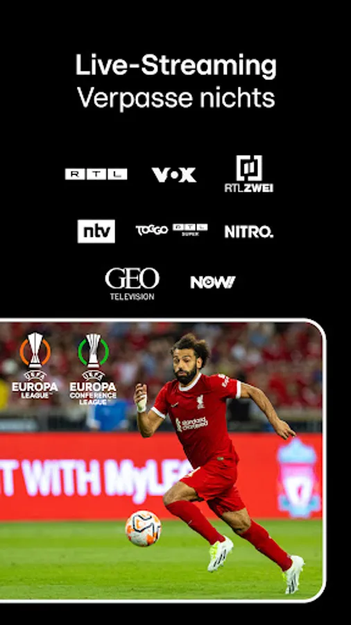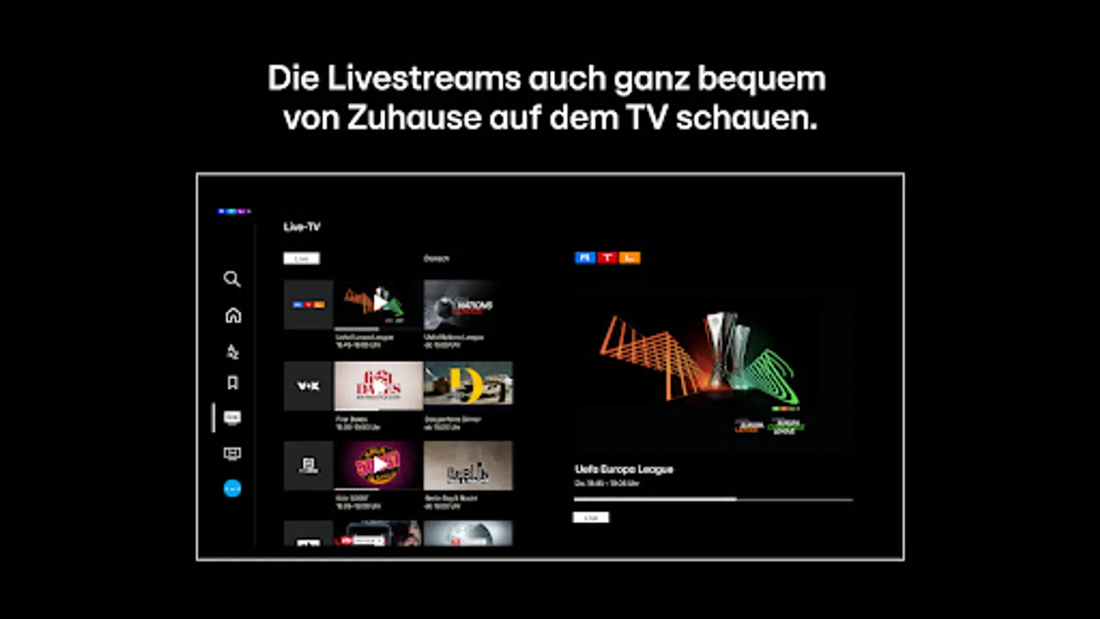 14 TV live streams are available to you with the RTL+ app: RTL, VOX, RTLZWEI, ntv, NITRO, SUPER RTL, TOGGO plus, RTLup, RTL Crime, RTL Passion, RTL Living, VOXup, now!, GEO Television.