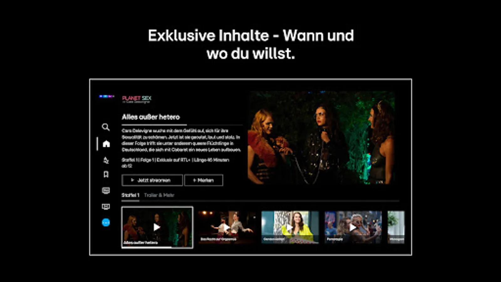 Would you like to watch reality shows like "The Bachelorette" or "Charming Boys" and RTL+ original series like "Der König von Palma" or the exclusive "Dick & Doof" vodcast? Just start our app, sit back, stream and enjoy.