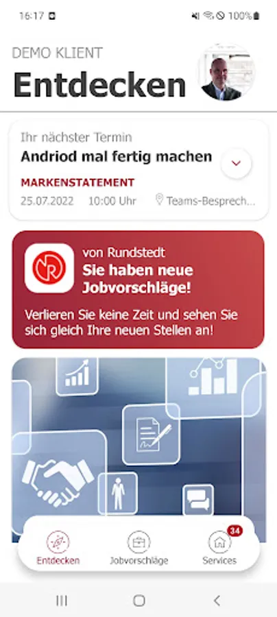 With the myTURN app, you always have your personal career companion with you. Discuss your professional reorientation at any time, even when you are away from home.