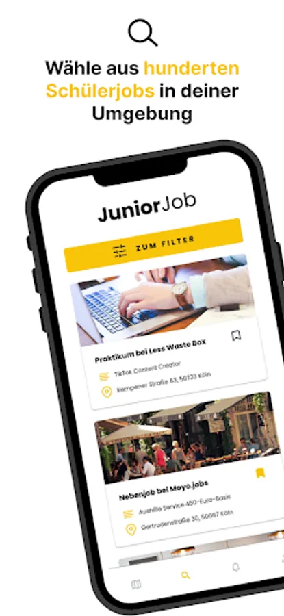 To find your ideal job, first register in our app. JuniorJob shortens the application process by entering your data in a résumé prepared by us. In addition, you always stay up to date thanks to our push notifications.