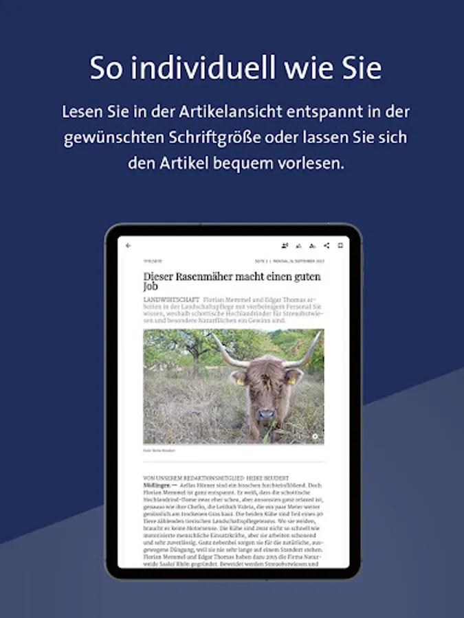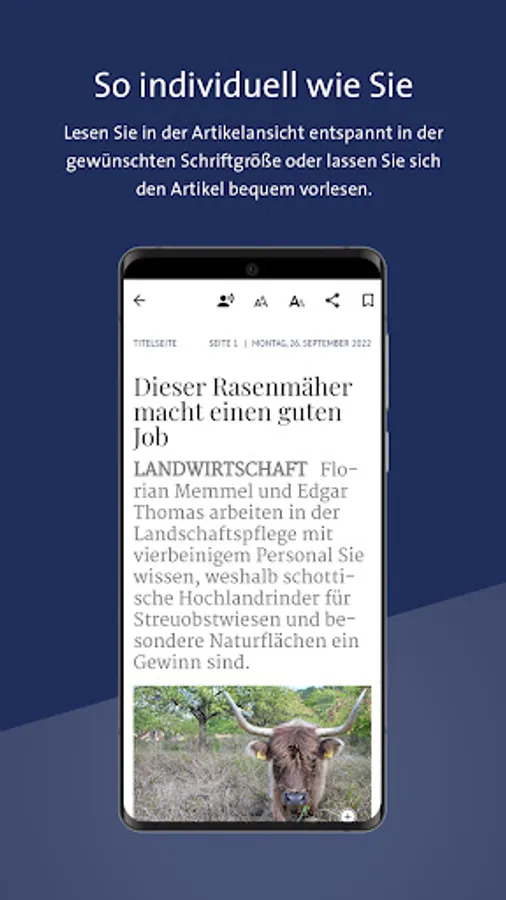 Read the e-paper in the size that suits you: thanks to the zoom function, you can navigate intuitively through your daily newspaper. In the article view, you can also adjust the font size individually.