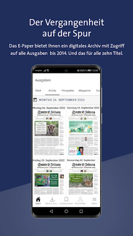 The new e-paper of the Saale newspaper gives you access to all newspaper editions since 2014. You can also conveniently save individual newspaper editions in your personal newspaper archive.