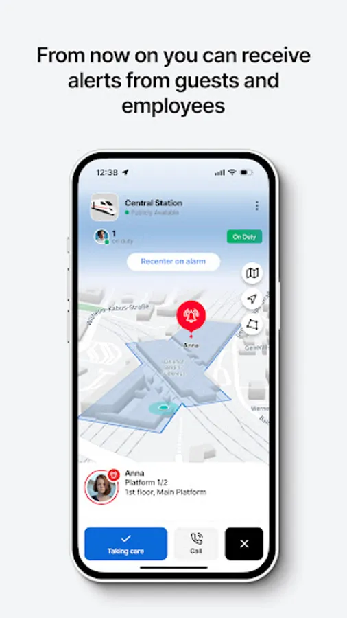 Security guards see the position of a person in need on their app, saving them valuable time in finding them. Incidents can be handled quicker and in a more targeted manner, which is much appreciated by people who called for help.