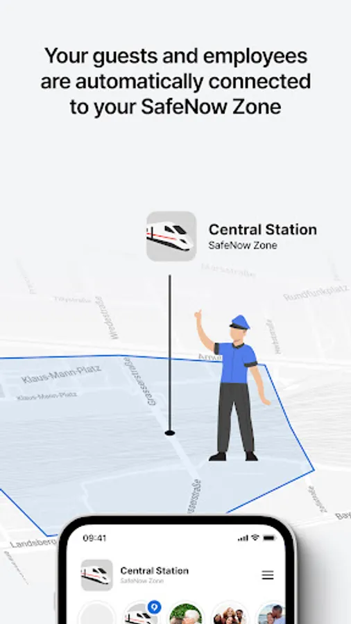 Set up a SafeNow Zone for your business campus, shopping center, train station, hotel, event or university. Employees and guests will be able to directly alert your security guards on site in case of emergency. In this way people that need help receive help swiftly and incidents can be resolved more quickly or prevented altogether.
