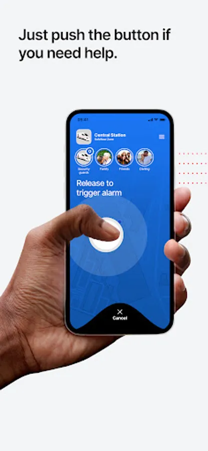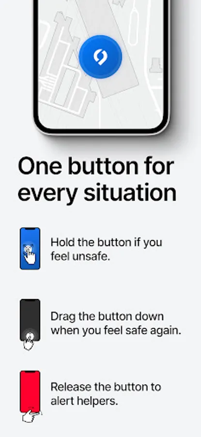 Press and hold the SafeNow button when you feel uncomfortable. As long as you keep your finger on the button, SafeNow is active. If your finger leaves the screen, an alarm is triggered immediately. You can disarm the button at any time if you are fine again.