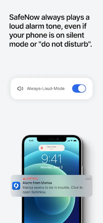 We often miss calls and messages because we are too busy or don't know that they are truly important. Thanks to our "Always-Loud Mode", SafeNow can play a loud sound even when your phone is silent or on "do not disturb”, so you don’t miss an alarm when it's really important.