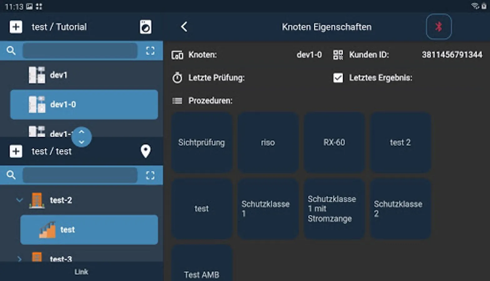 The operating concept allows efficient testing, combined with quick documentation. A created location tree can be used across systems, devices and objects.
