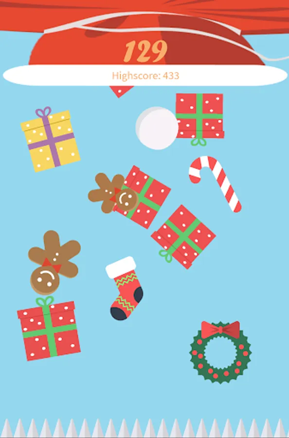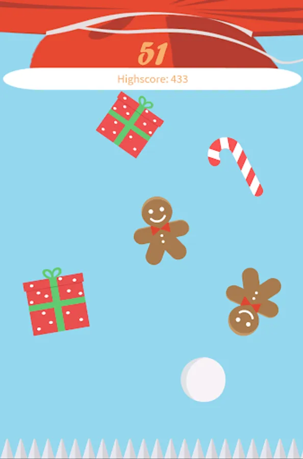 Are you waiting for Santa Claus? He is on his way from the North Pole to your house. But wait… what’s this? He has an accident with his reindeer sleigh due to a big snowstorm. All presents fall out of the sack. Now he can’t make it to the children in time! Reindeer and Santa Claus are desperate. Could you help them? Please pick up all the gifts, gingerbread men, candy canes and Christmas wreaths before they fall down. But don’t touch the snowball!