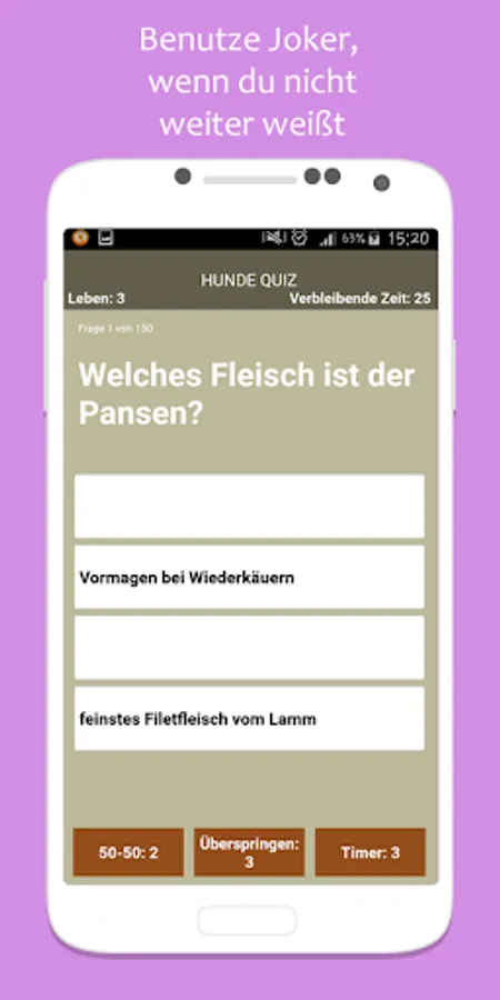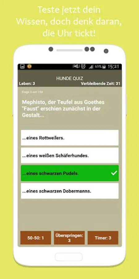 Each question is given by the classical principle with four possible answers, of which only one is correct. To increase your chances, you can one of three jokers use. Reach the high score of the most correct answers and share it with your friends via Google Play leaderboard.