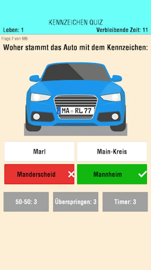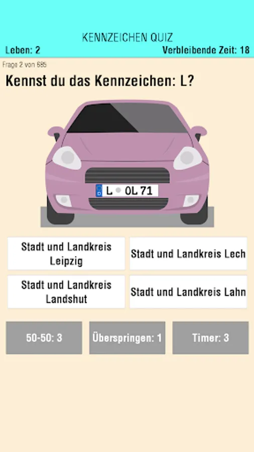 To make the app a little more entertaining, we have also provided every tenth question with a picture, which shows a car with a more or less witty mark. WAU!