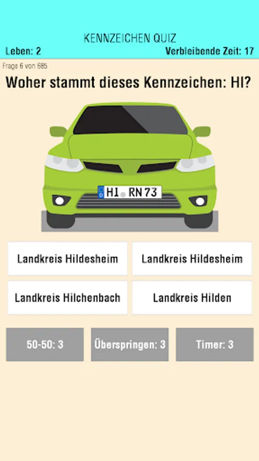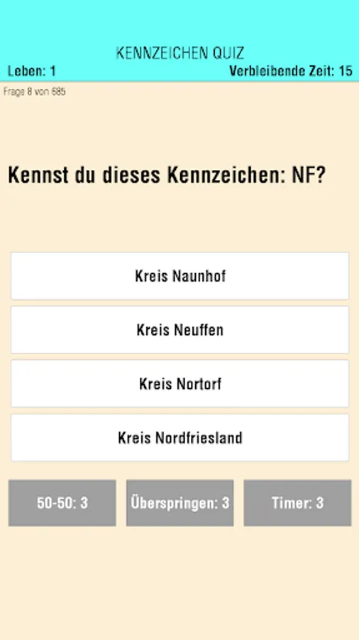 Especially in terms of wrong answers, we tried realistic rate alternatives for the license record. These are not at all always so easy to find for abbreviations like KYF and the identification with spatial derivative. What? There is only one city with X at the beginning? What alternatives are we supposed to find Xanten please? You say, Xanten has no own mark, but has WES, DIN, MO in Wesel? But since we're lucky. Sorry, their Xanten.