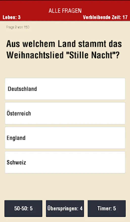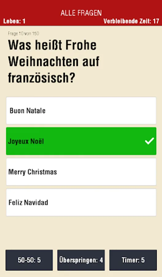Each question is given in the classical principle with four possible answers, of which only one is correct. To increase your chances, you can use one of three elves aka jokers. Reach the high score the most correct answers and share it with your friends via Google Play leaderboard.