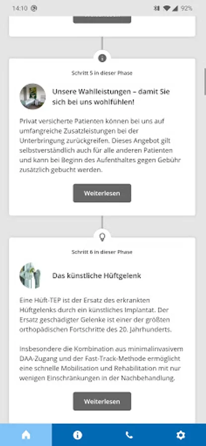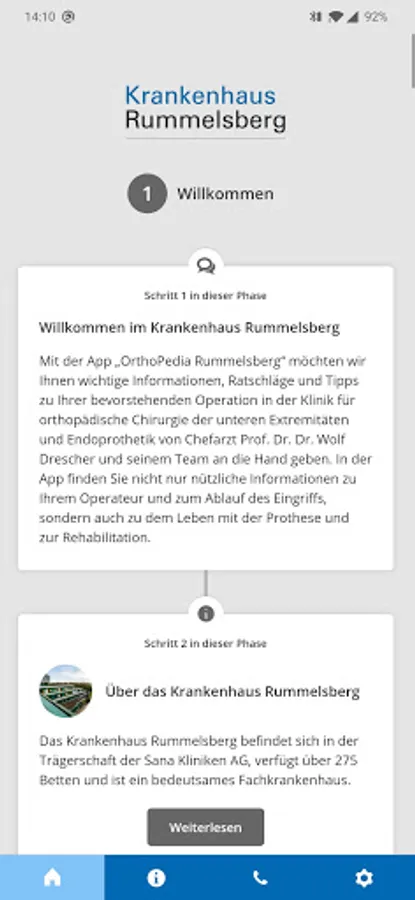 The "MeineSana" app is your digital companion on the way to health. They will provide you with comprehensive information about your treatment in the Sana clinics. This gives you the opportunity to obtain comprehensive information before your hospital stay - whenever and wherever you want.