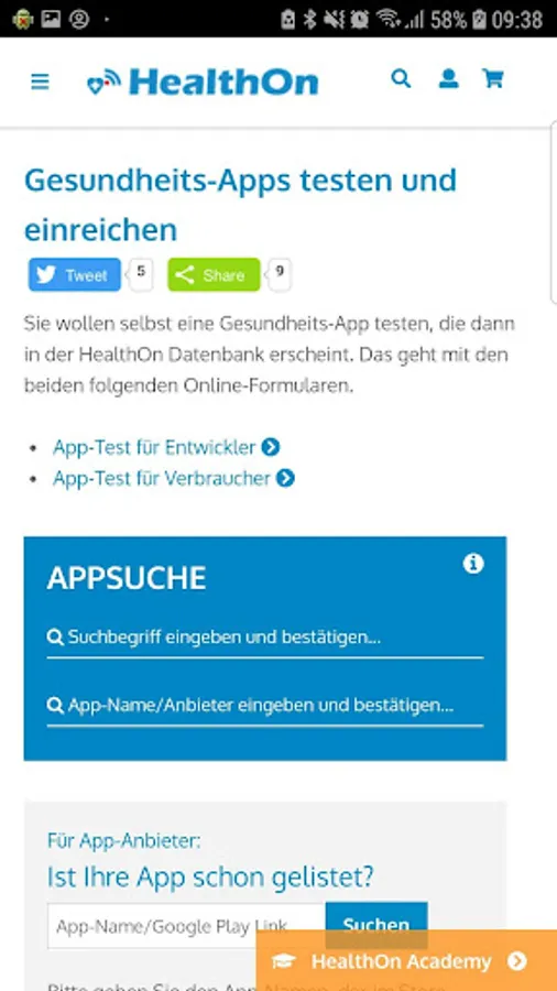 Would you like to test a health app with the online app test, which you may already use yourself and recommend to others? You can make your test results available to others through HealthOn. You help to increase the number of health apps in the database. The more apps that are rated in the HealthOn database, the greater the value for the online community.