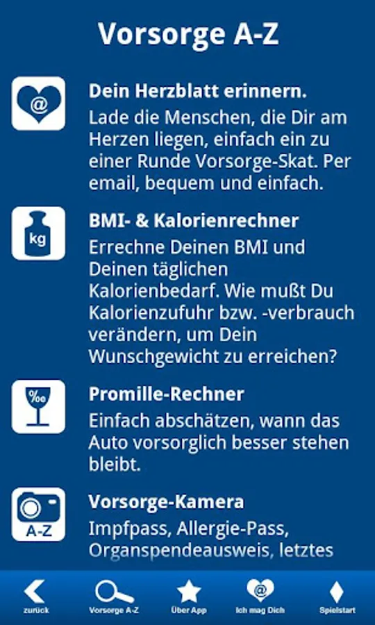 The app shows how to play trumps in terms of better health, to recognize and seize opportunities risks. They followed the criteria of the code of honor HealthOn Apps for trustworthy health information apps. More at http://www.healthon.de