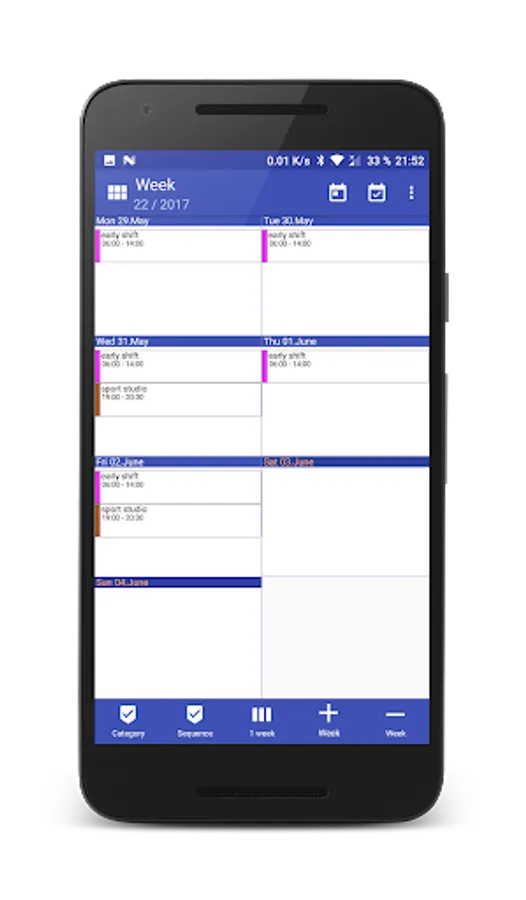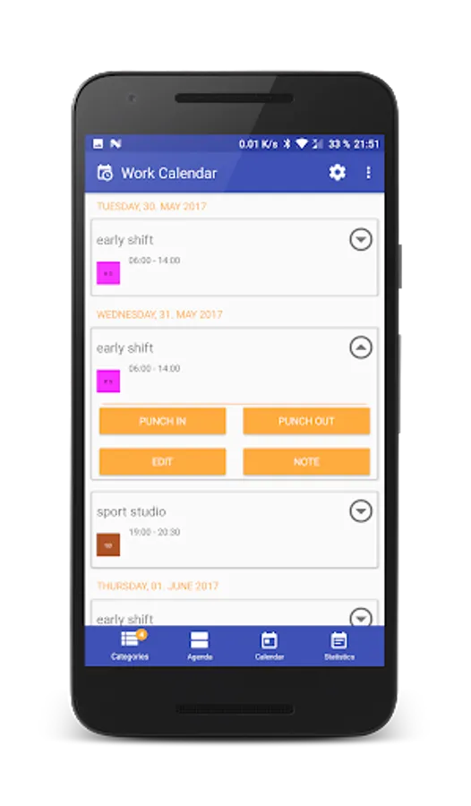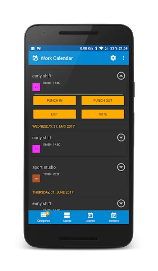 Work Calendar will help you to enter your shifts and work schedule in a clear, easy and convenient way.