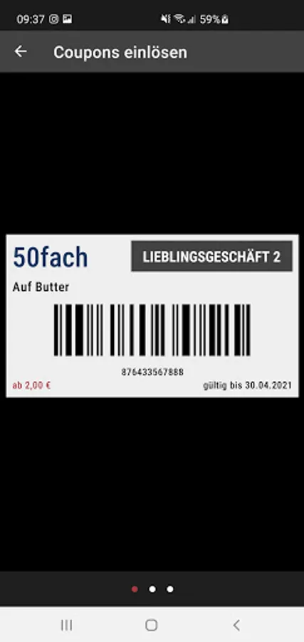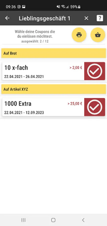 In the shop you then only have to select the partner and you will only be shown the valid and not yet used coupons. These are even filtered for coupons of the same type and when they are about to expire. After briefly selecting what you have in your shopping cart, you can then conveniently scan the barcode of the partner card displayed in the app and then only the selected barcodes of the coupons by swiping at the checkout. It couldn't be easier.