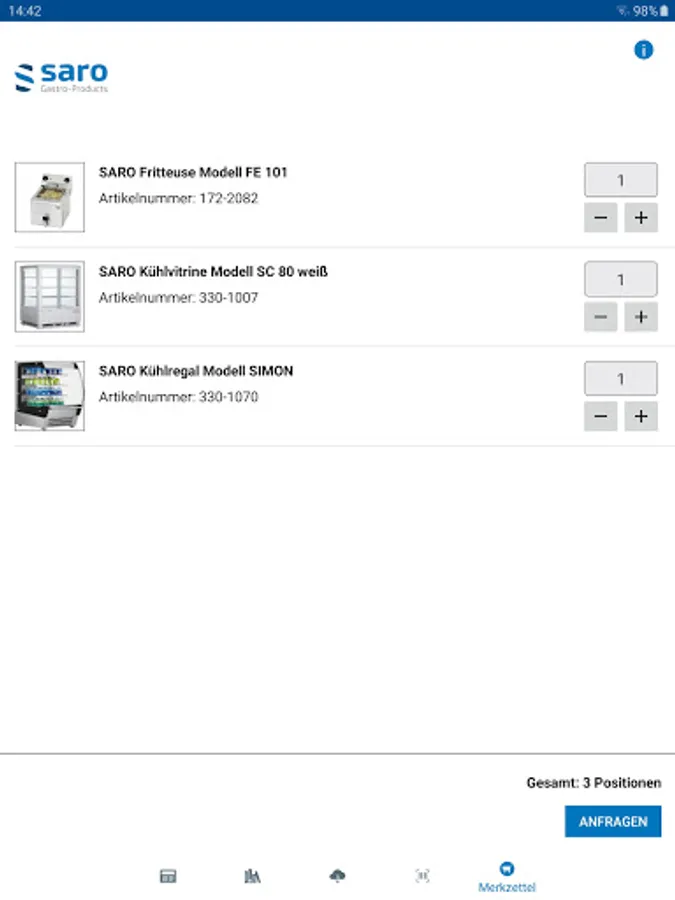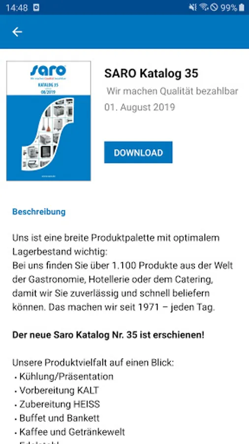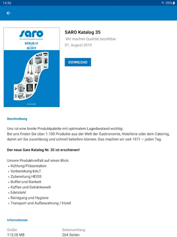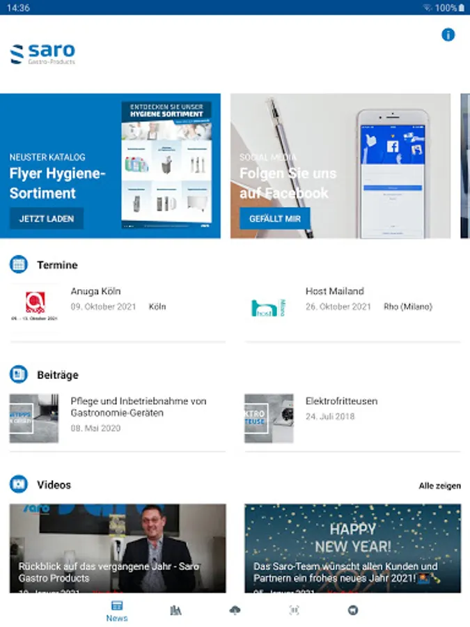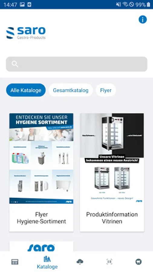 Discover our current catalog, product flyer, as well as news and events relating to our catering products in the Saro app. The Saro Blätterkatalog offers you numerous functions from the product search to video content to bookmarks.