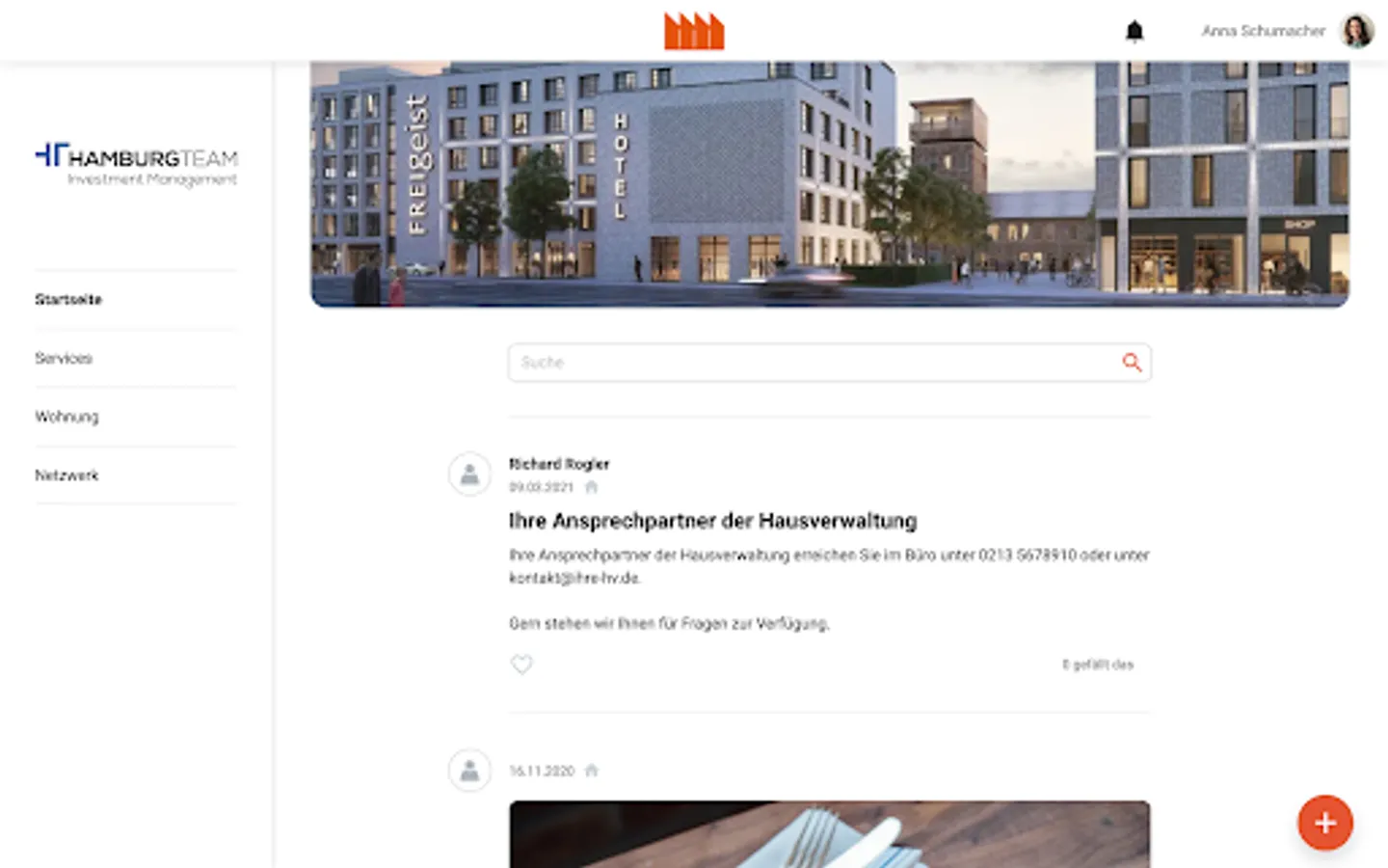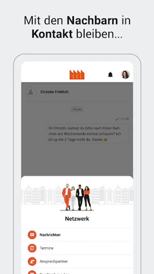 Stay in touch with your neighbors and exchange ideas. The well-known social functions such as chat and home feed with comment and like functions are of course available.