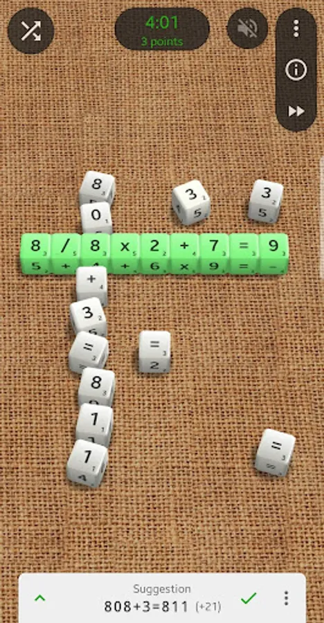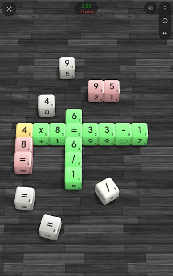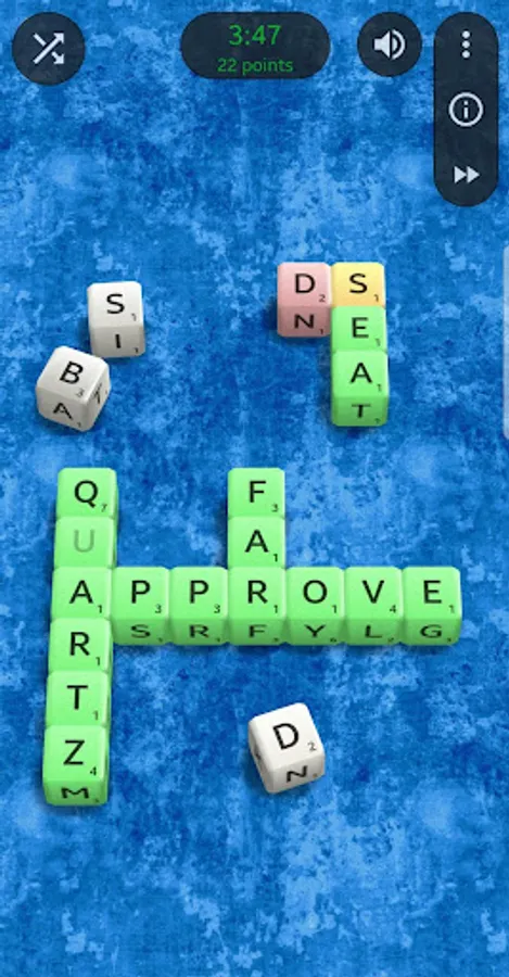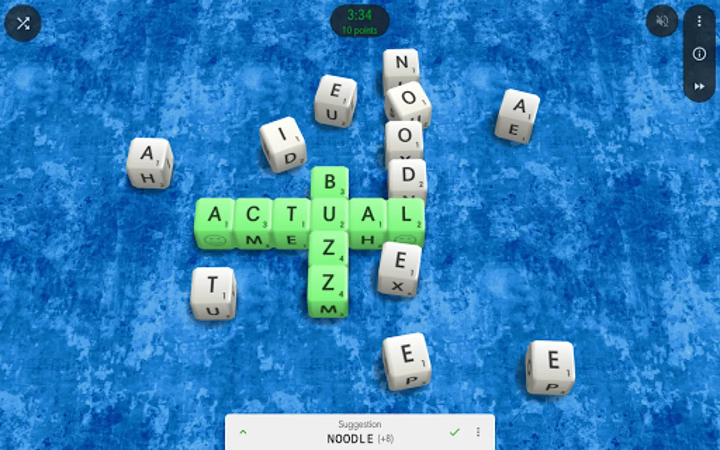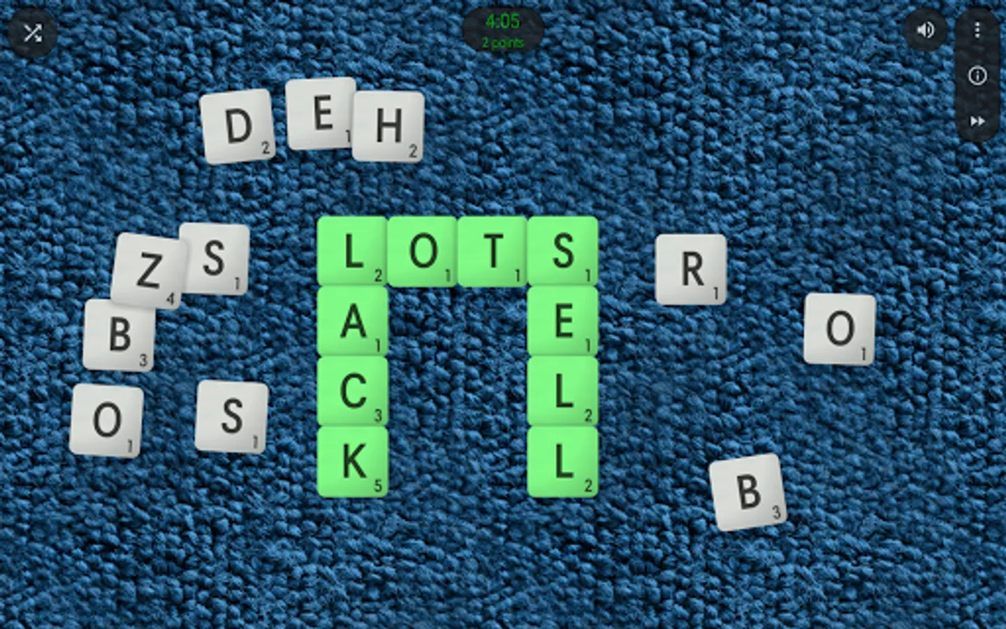 Toss the dice and arrange the jumbled letters to form valid words, both horizontally and vertically. Try to use as many tiles as possible before the time runs out. You get points for the letters used only in correct words, for all unused letters you get minus points.