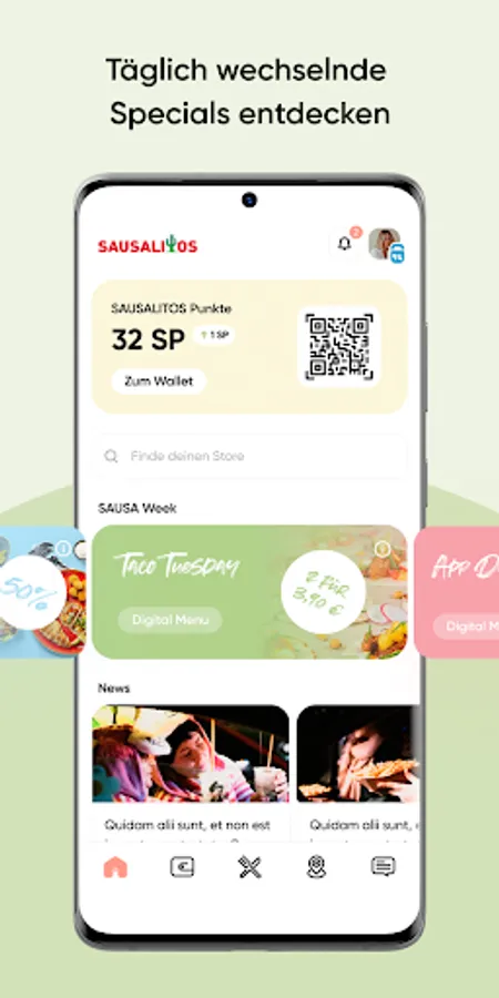 Download the SAUSALITOS app. When paying your bill, select the QR code in the app and submit it to your service representative for scanning. FINISHED!