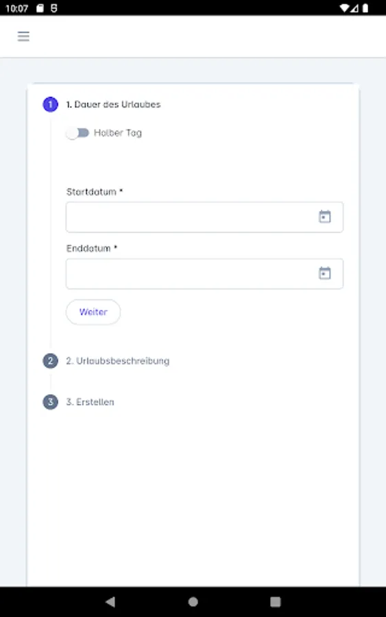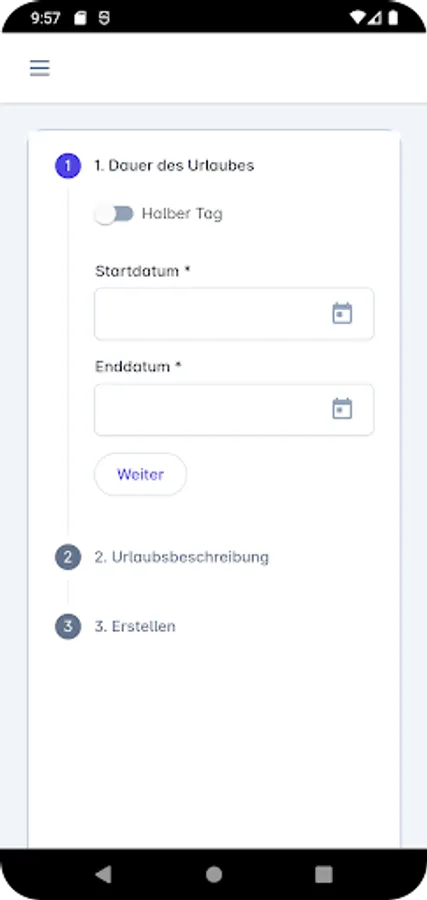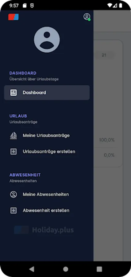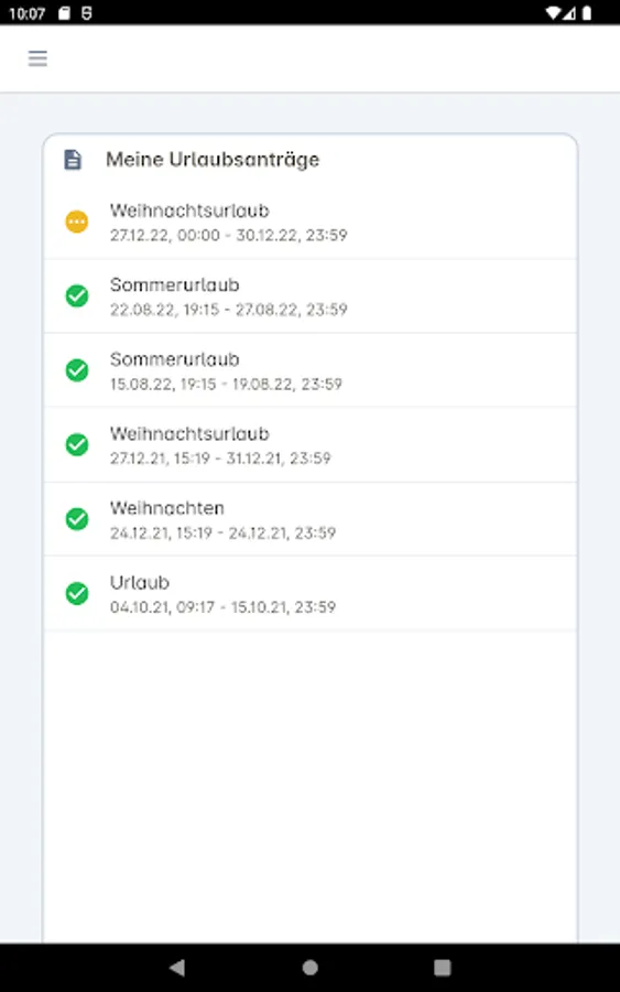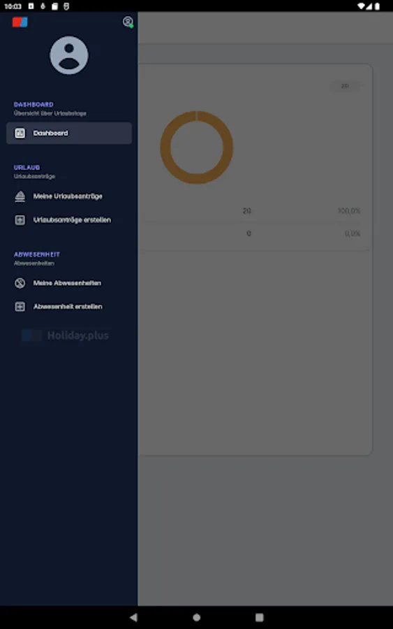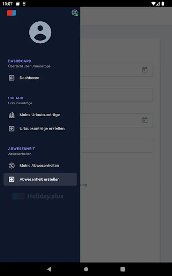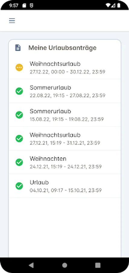 Half-day or full-day vacation requests can be entered in holiday.plus. Absences with a reason can also be specified here. The status, "approved" or "rejected", of your entry can be viewed. You are given an overview of your remaining vacation days and vacation days you have already used.