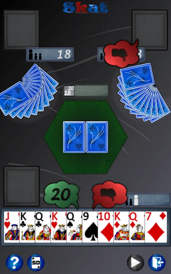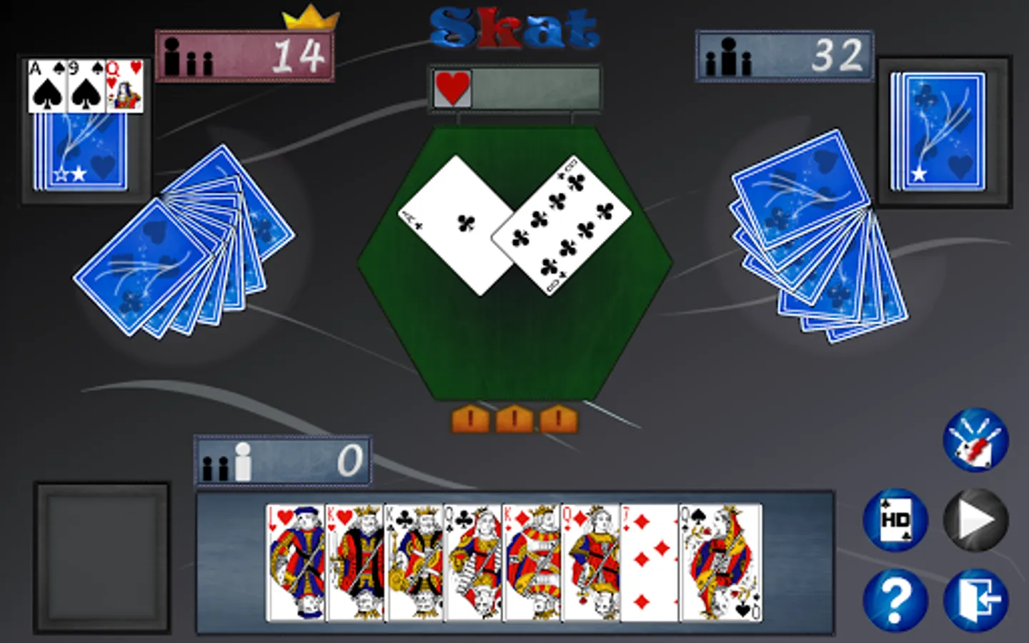 Please note: This app does not replace a professional Skat player. It plays on a leisure level. The AI player are a test for a neural network algorithm which has learned the game of Skat by observation and self play. For interested readers the networks have around 250 neurons for each game and auction type. This method works not so bad but does generate odd moves occasionally. It is currently not planned to replace the neural network players by a more algorithmic Skat AI players.