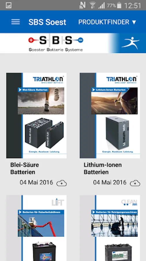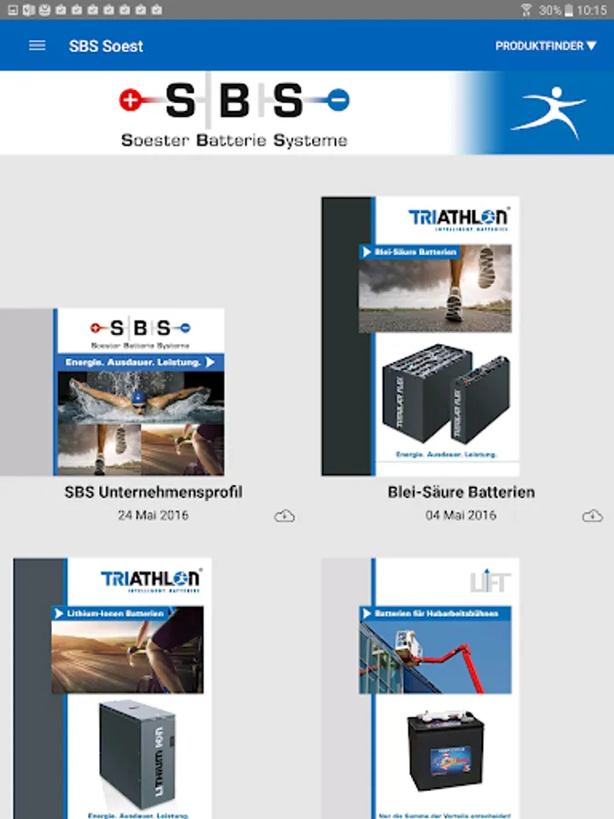 With the app, the SBS Soest Battery System GmbH is available next to information about the company, the complete overview of all brochures, sales material, brochures etc. to the individual battery categories. Broken down by subject area you can download your product - fast and free.